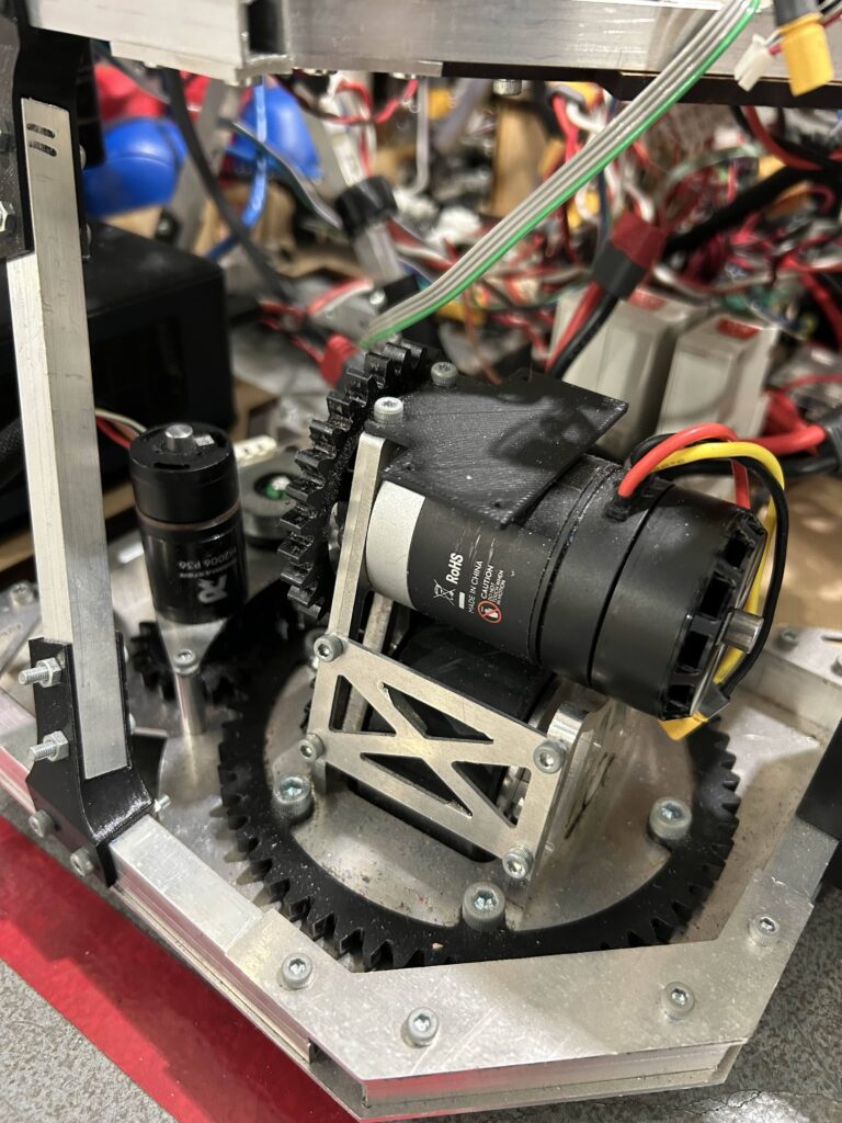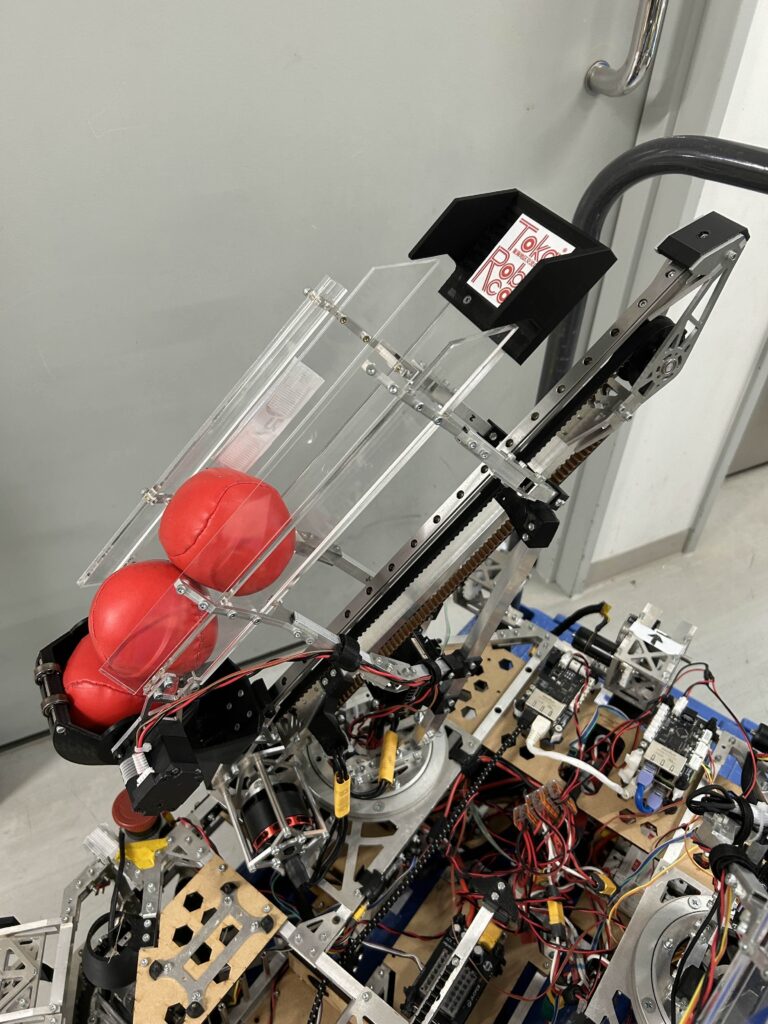 今回の大会では射出機構としてローラーを用いた機構と、ベルトによる直動機構の2つを作成し、実験を通してベルト直動機構を採用しました。大会中、屈指の射出精度を披露することができました。