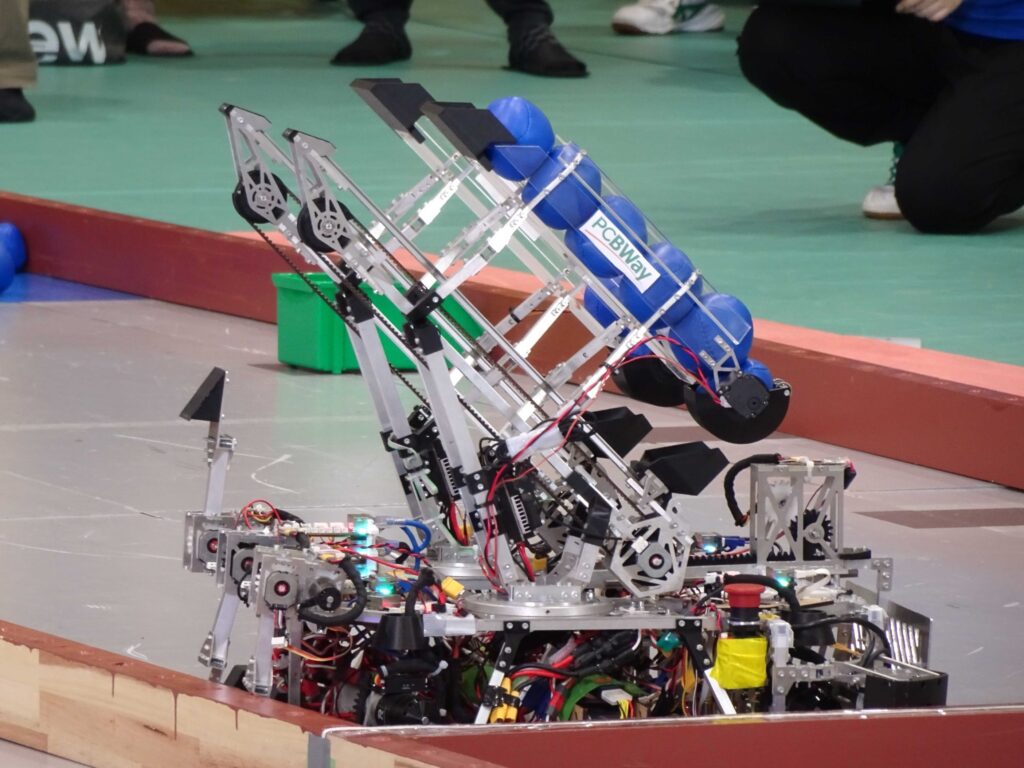 試合前半は練習通りの動きができましたが、試合開始2分ごろに独立四輪ステアリングの操舵部分にエラーが発生し、走行できなくなりました。リトライによって復帰を試みましたが、思うような操縦ができず、その後得点できず敗北しました。